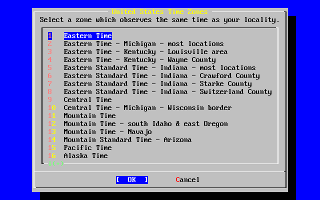 Use the arrow keys to highlight your time zone and then pres Enter.